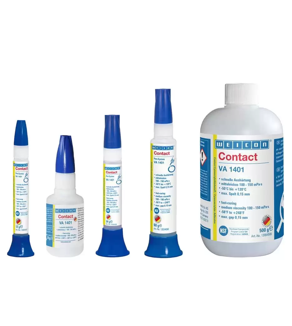 - Độ Nhớt Thấp và Cao: VA 1401 có độ nhớt thấp, dễ dàng thẩm thấu vào các khe hở siêu nhỏ. WEICON còn cung cấp các phiên bản độ nhớt cao để dán các bề mặt xốp hoặc không đồng đều.